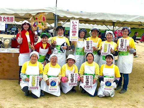 河内長野市民まつり、河内長野市商工祭でいか玉焼きやぜんざい等、 模擬店を毎年出店し部員一丸となって盛り上げに協力しております。 いか玉焼きは当女性部の名物で、毎年楽しみに買いに来られるお客様がたくさんいらっしゃいます。
